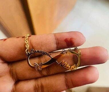 Custom-made with your chosen name incorporated into the infinity symbol